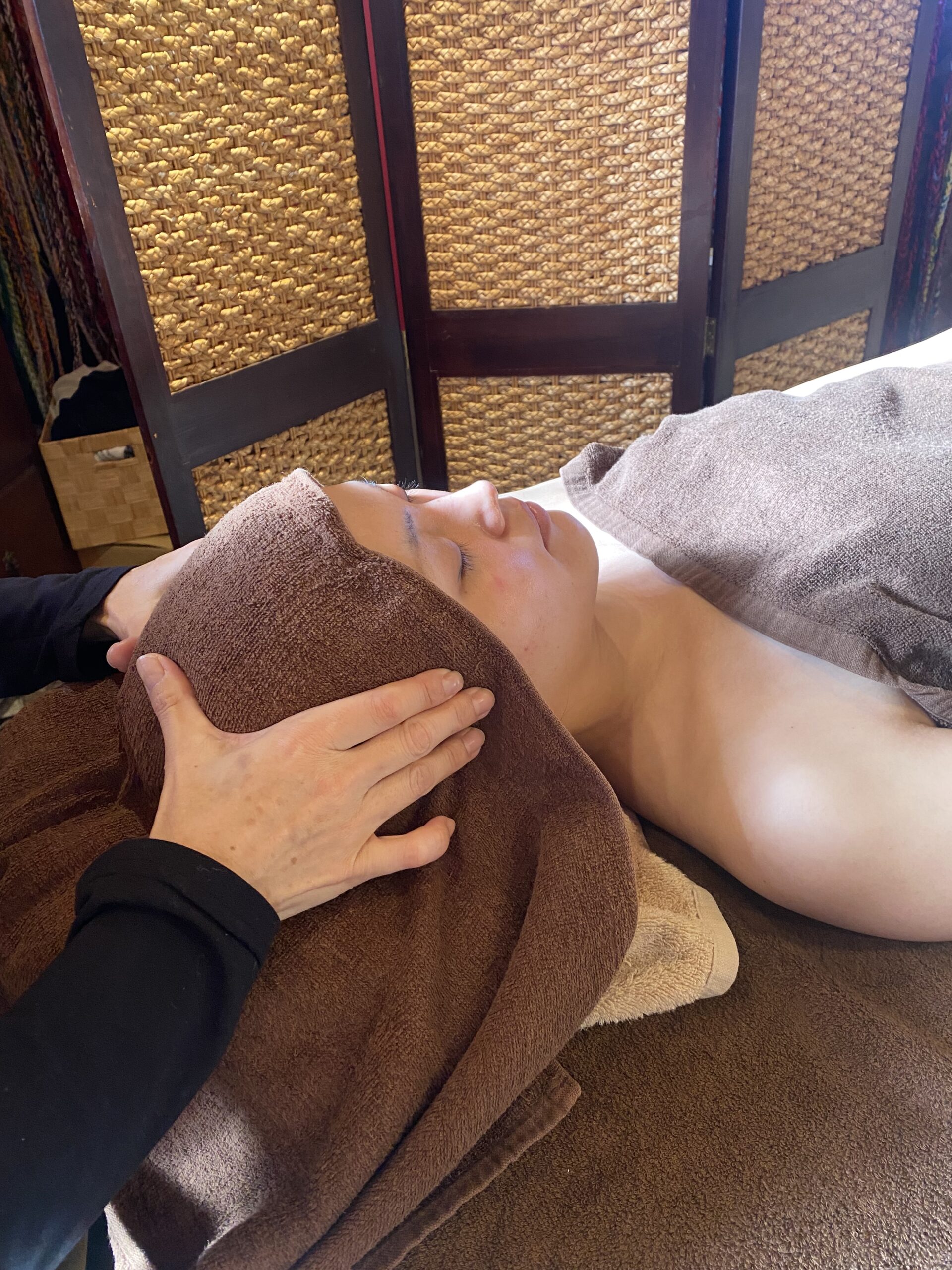 頭や首肩の緊張をやわらげ、深いリラクゼーションへ。心地よい手技が、心身をふわりとほぐします。