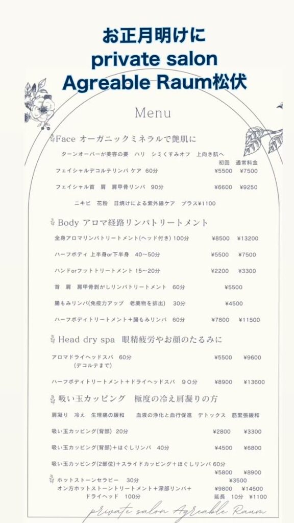 アロマトリートメント・カッピング・腸活ケアなど、多彩なメニューで内側から軽やかな巡りへ導きます。