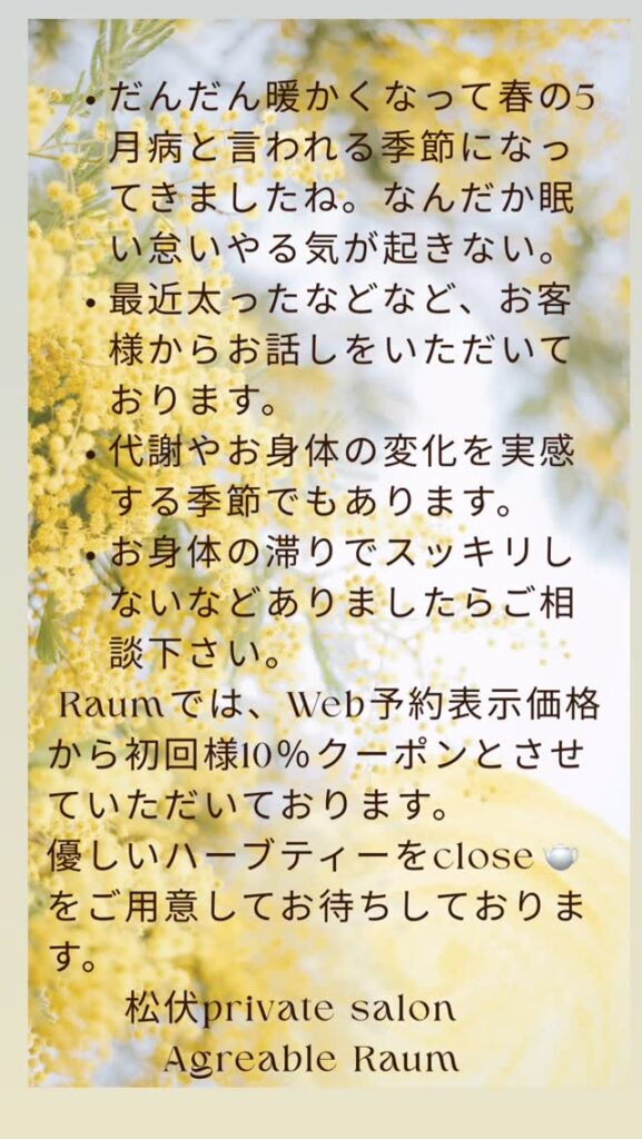 Raumは、どなたでも気軽に通っていただけるアットホームなおうちサロンです。